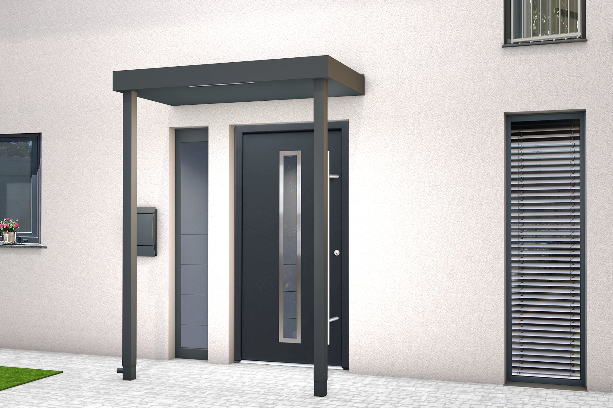 Das Vordach Front Line gibt es in verschiedenen Ausführungen.